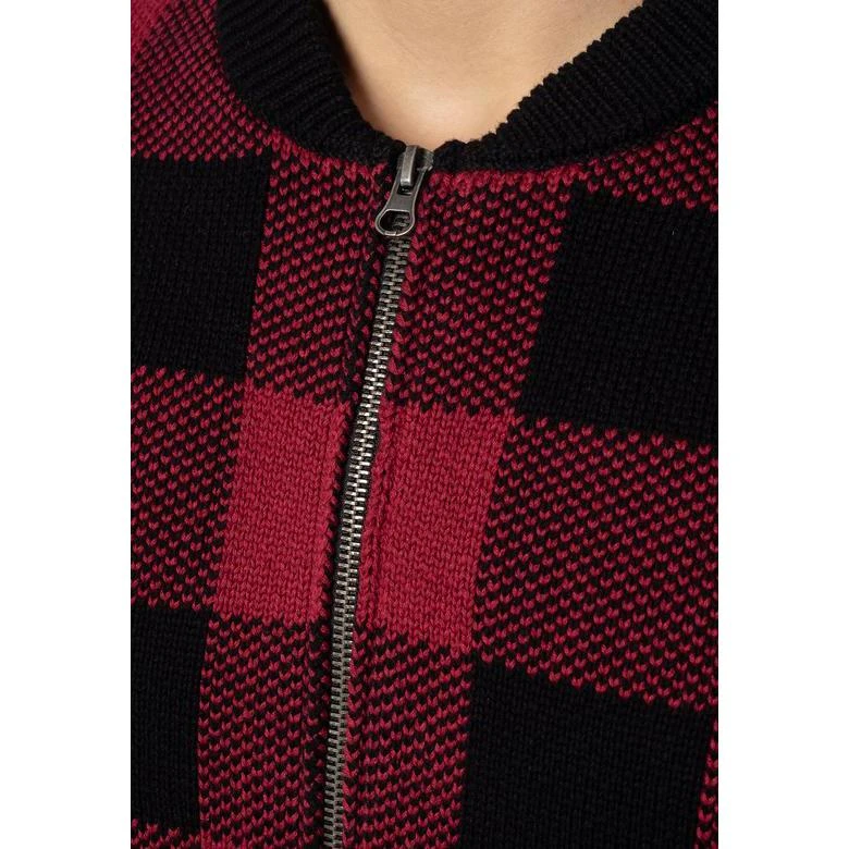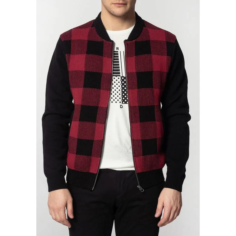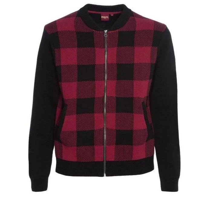 Bold red checks are an iconic aesthetic, referencing American workwear and classic British style. We’ve mashed them up with a comfy zipped cardigan in a bomber-style cut.