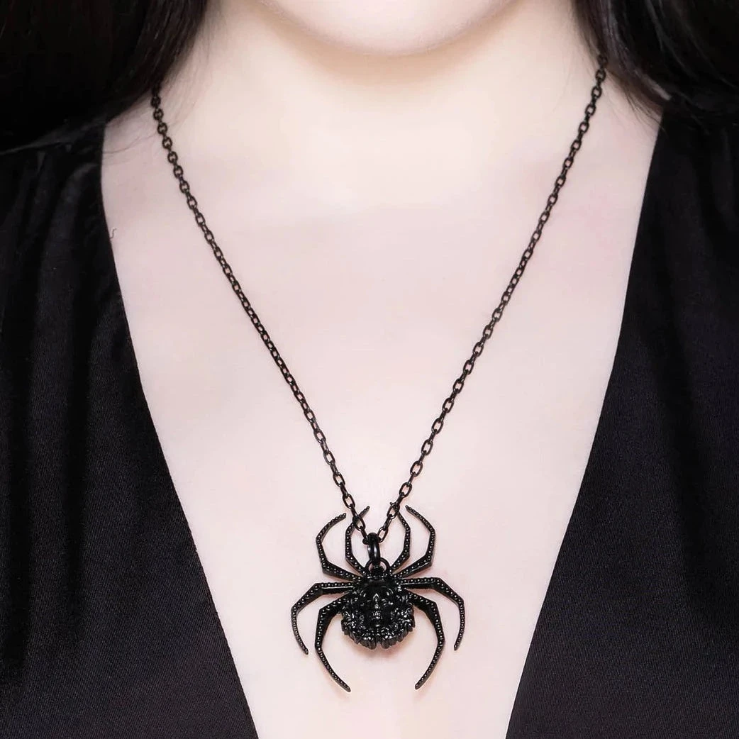 Do the universe a favour and don’t hide your magic! Add something special to your fav looks with the ‘Arachna Morte’ necklace; with a statement spider pendant and a long chain. The perfect addition to any dark ghouls jewellery collection!
