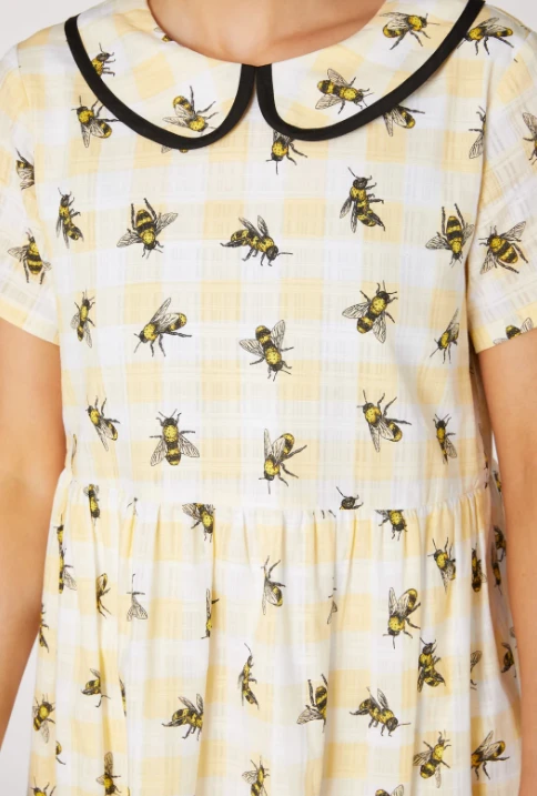 - Bee Print on Textured Checked Cotton Fabric