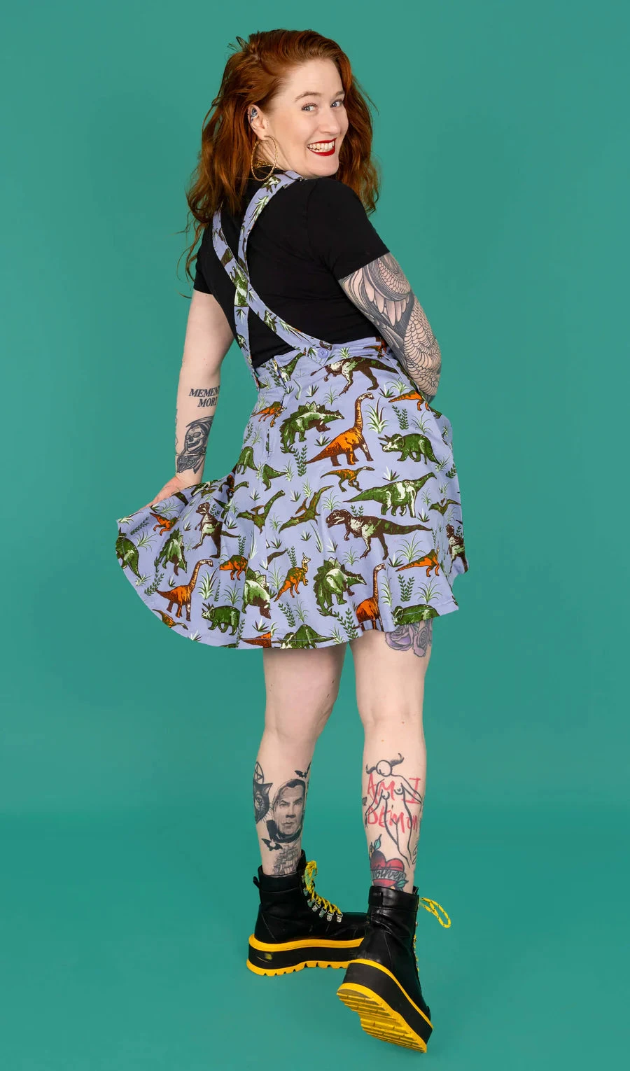 Take an exciting journey with this Blue Adventure Dinosaur Flared Pinafore Dress! Featuring an easy-to-wear pinafore style and no so subtle dinosaur pattern, it’s the perfect choice to show off your inner-adventurer. Whether you’re headed to the shops  or hitting the bars this is the perfect pinafore.