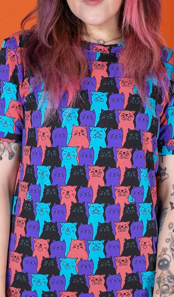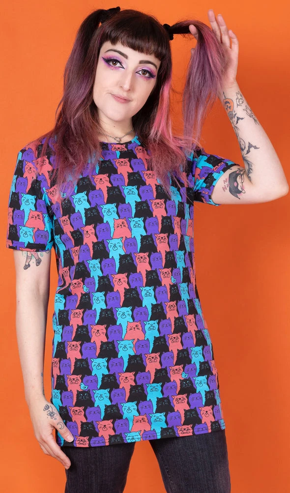 Fitted Cotton/Elastane Tee with all over Cat Chorus print.