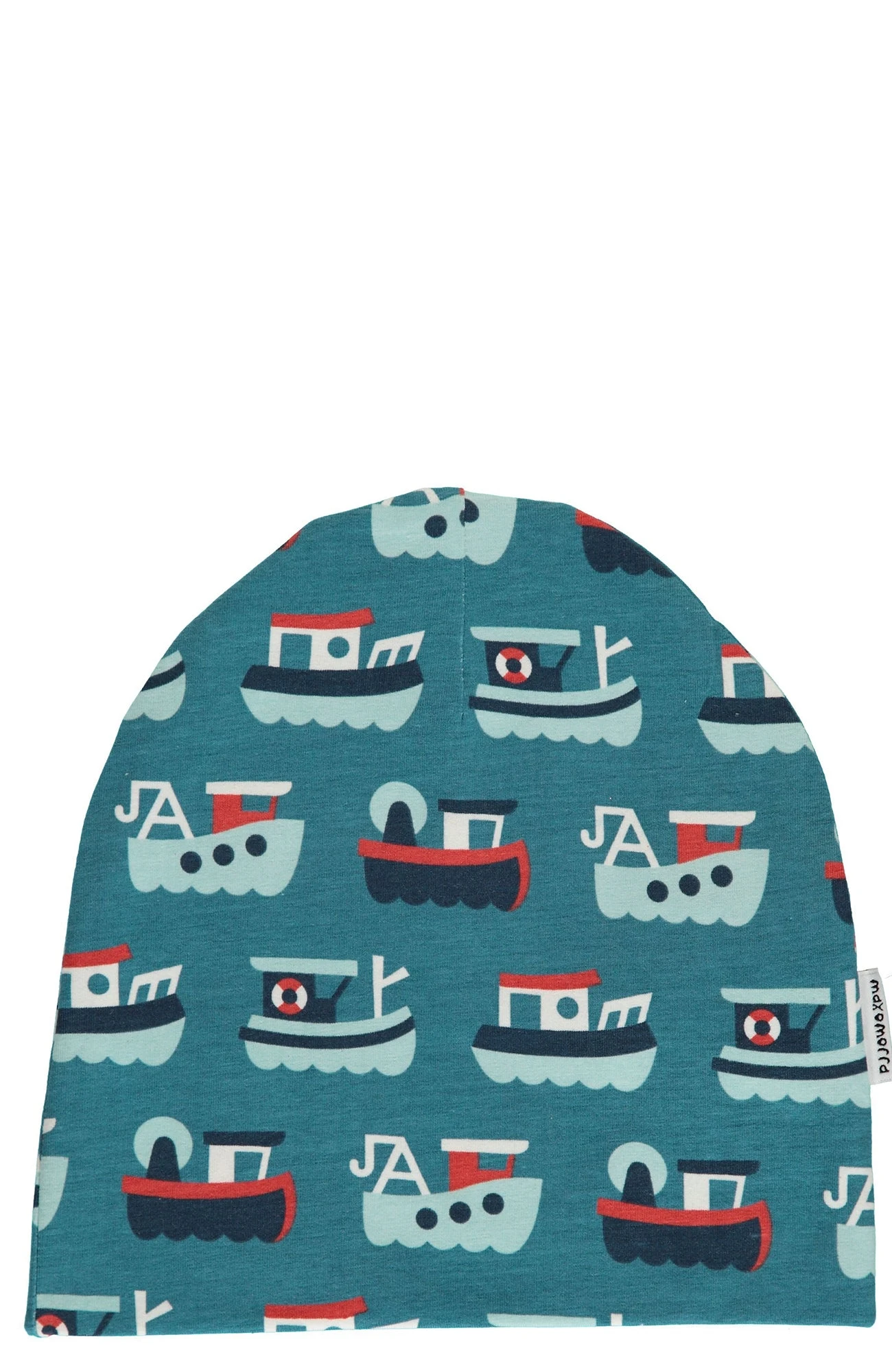 Classic Maxomorra Trawler Scandi repeat print featuring boats on a blue background
