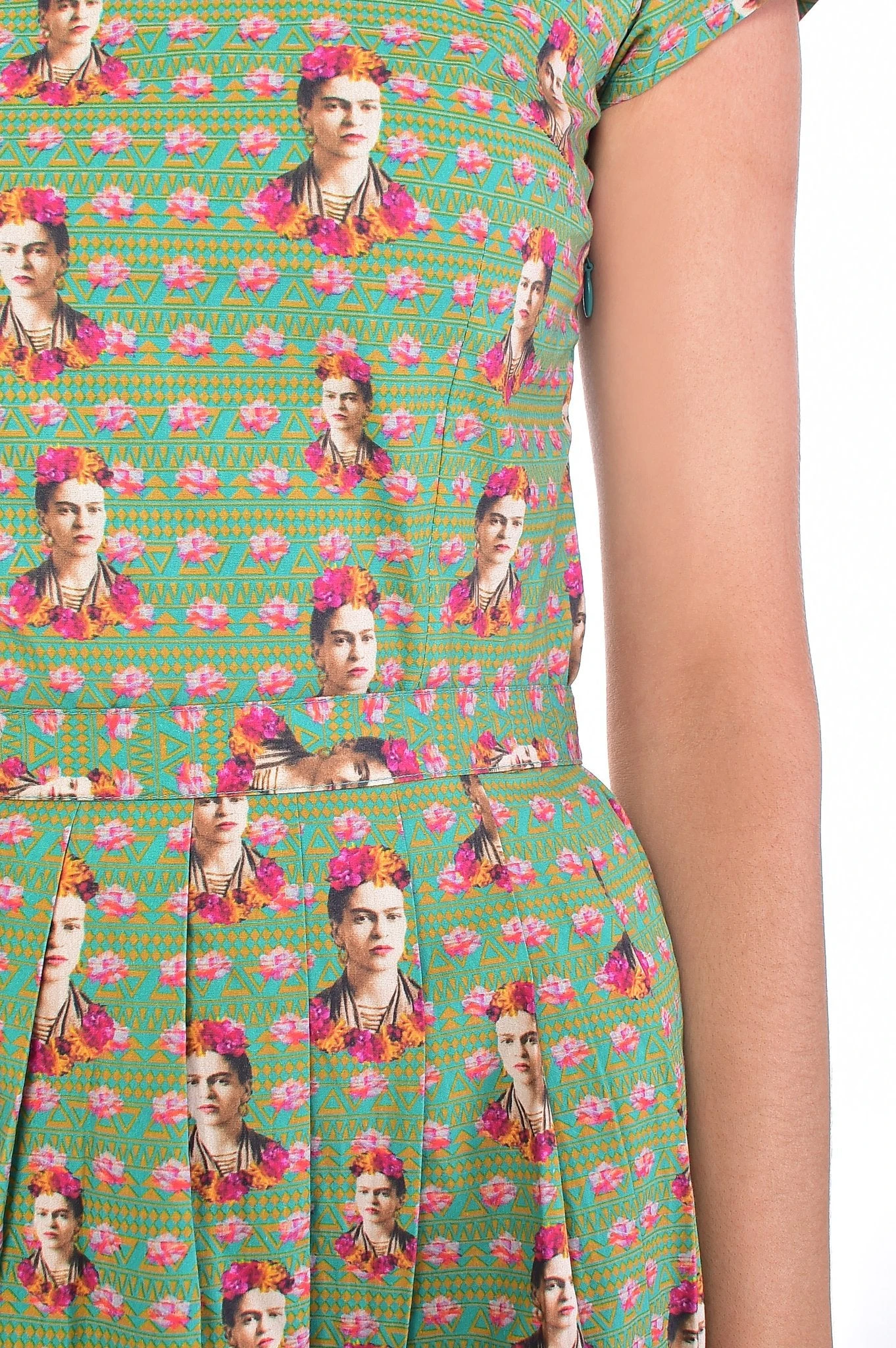 Mexican Floral Frida Khalo Inspired Dress…Cute English Ivy Ground Colour Dress with photographic Frida Khalo & Floral Print