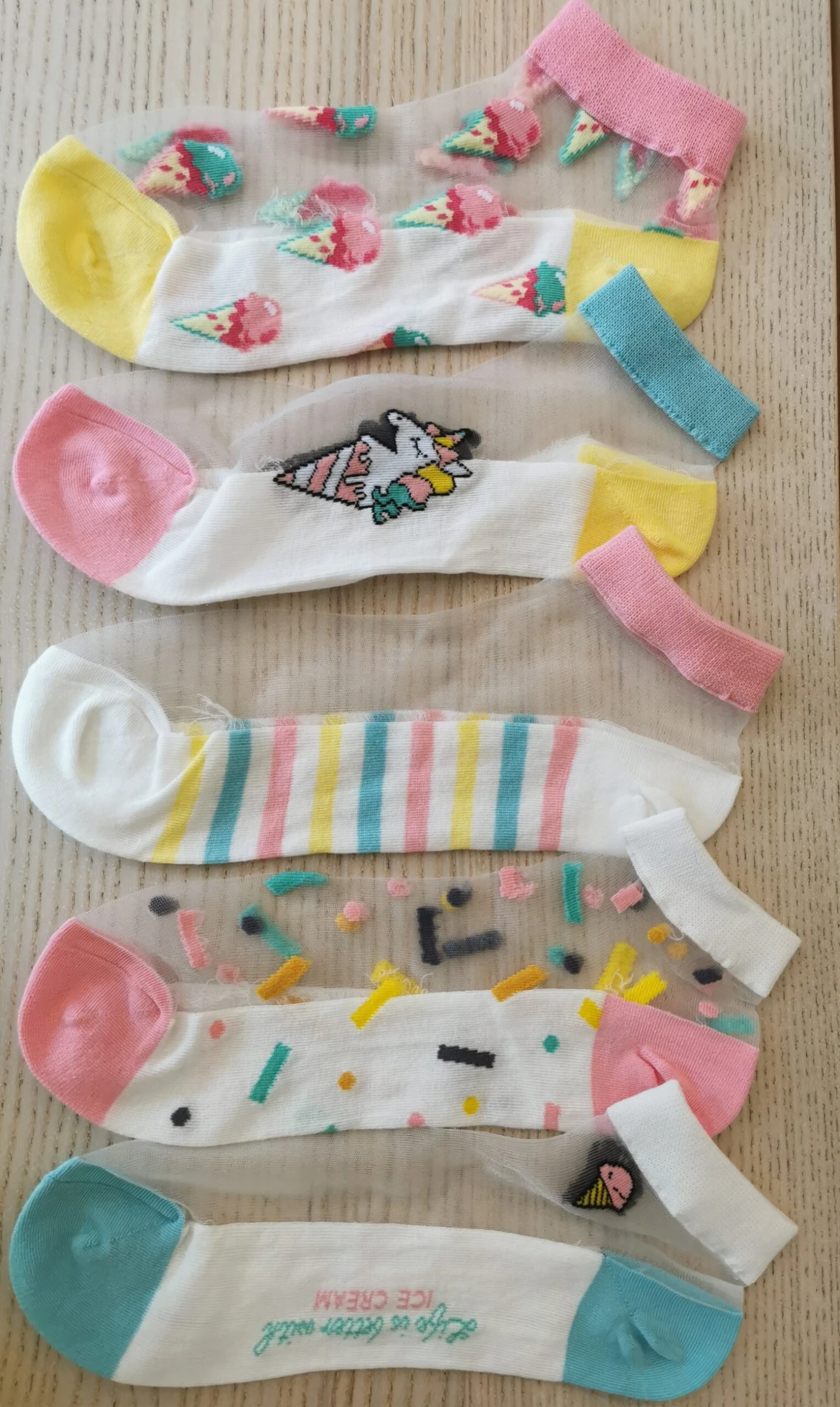 Ventilate your feet with these quirky see through socks. These sit quite low on the ankle.