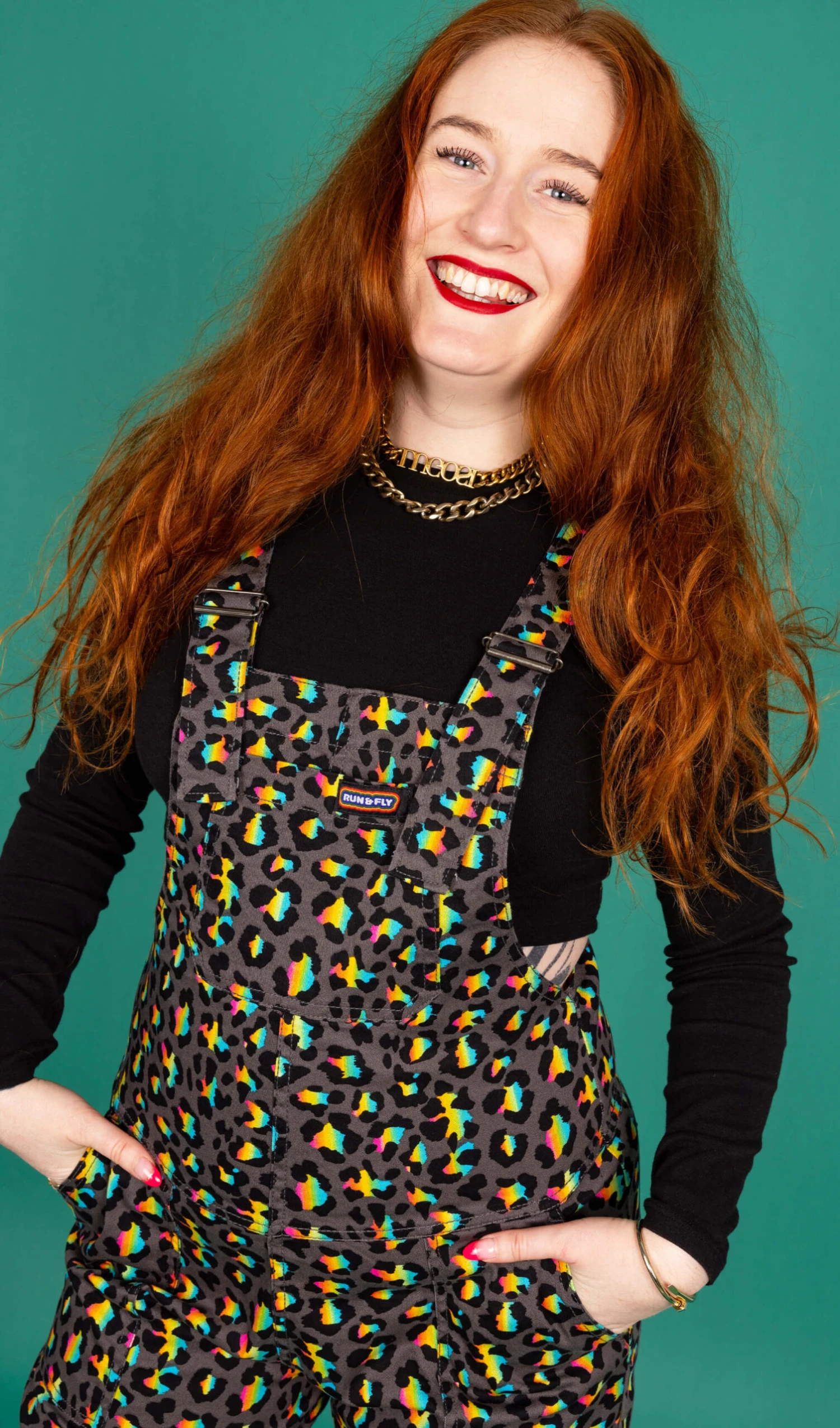 Unleash your wild side with Run & Fly’s Grey Rainbow Leopard Stretch Twill Dungarees. Made with stretch twill fabric, these dungarees provide ultimate comfort and flexibility. The unique grey and rainbow leopard print adds a fun and playful touch to any outfit. Go ahead, make a statement!