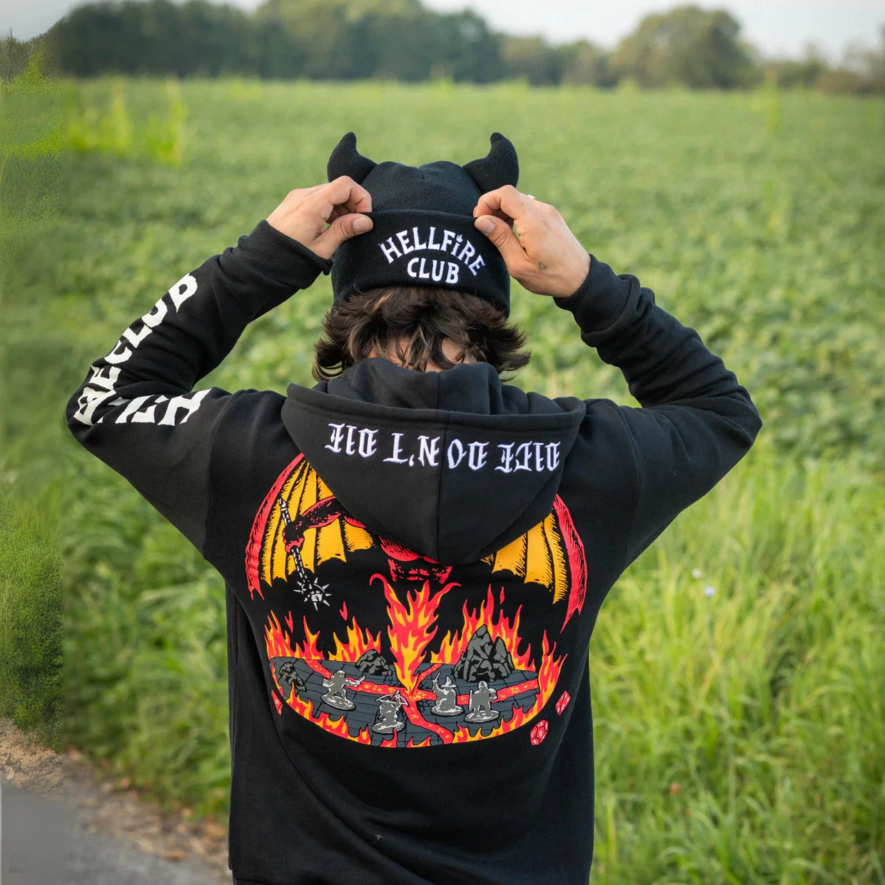 Keep extra warm in the flames with Cakeworthy’s Hellfire Club Hoodie, horns and all.Â