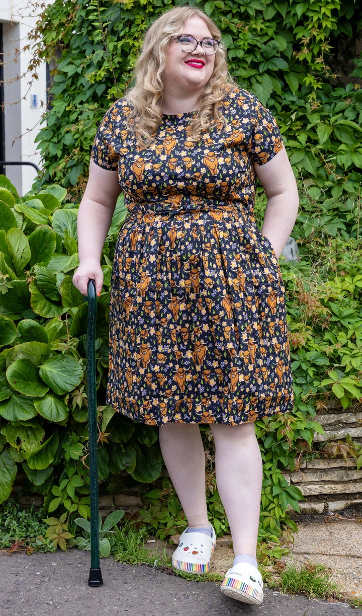 This Highland Cow Stretch Belted Tea Dress with Pockets will be sure to moo-ve you! With stretchy comfort, pockets to fill, and a belted waist – you’ll be lookin’ sharp as a tack!