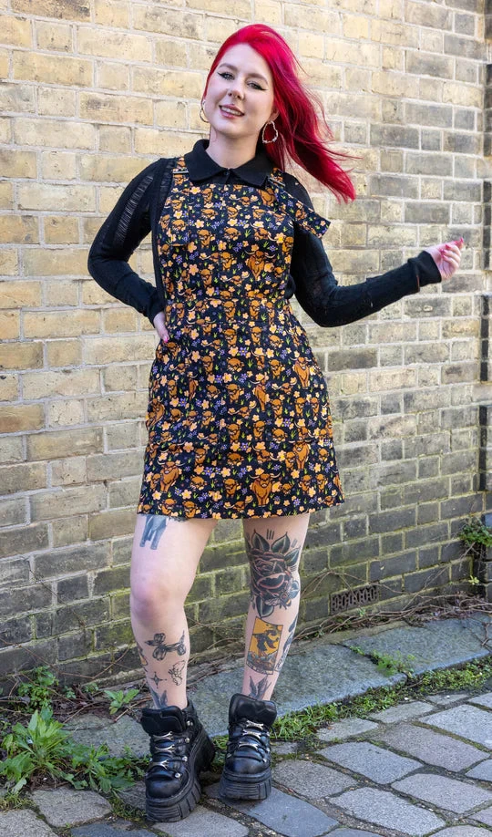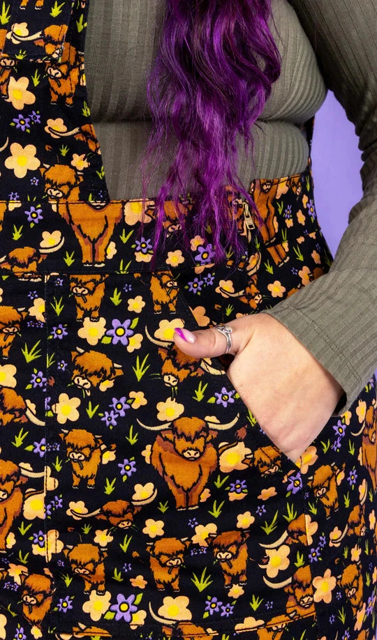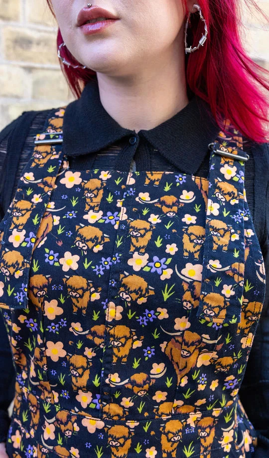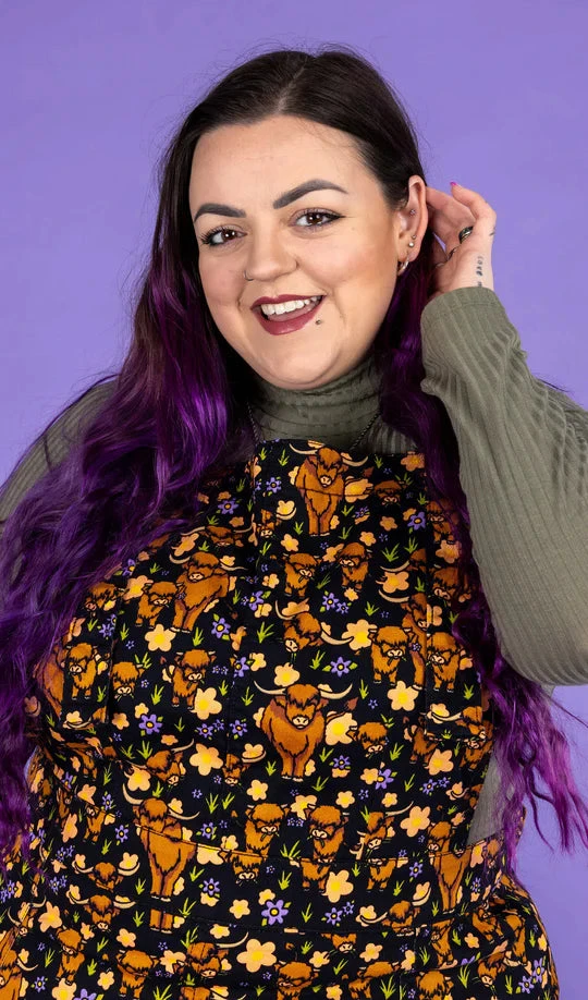 Ride into style with Run & Fly’s Highland Cows Pinafore Dress! Made with stretch twill for comfort and durability, this playful dress features adorable Highland Cows. Perfect for casual outings or a day at the farm. (Moo-re than just a dress!)