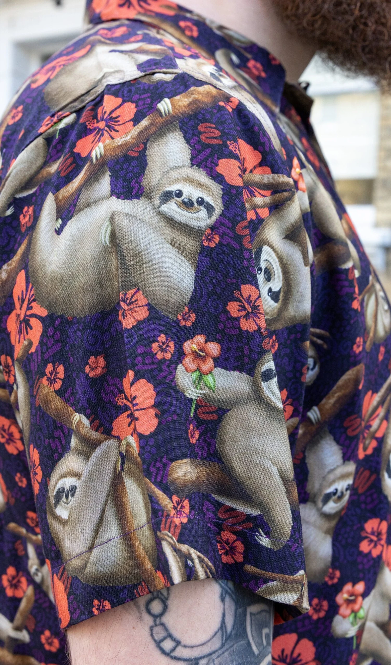 Take your chill to the next level with this stylish Island Time Sloth Short Sleeve Rayon Shirt! Comfortable and slim-fitting, this is one shirt made to be worn on beach days and lazy afternoons.