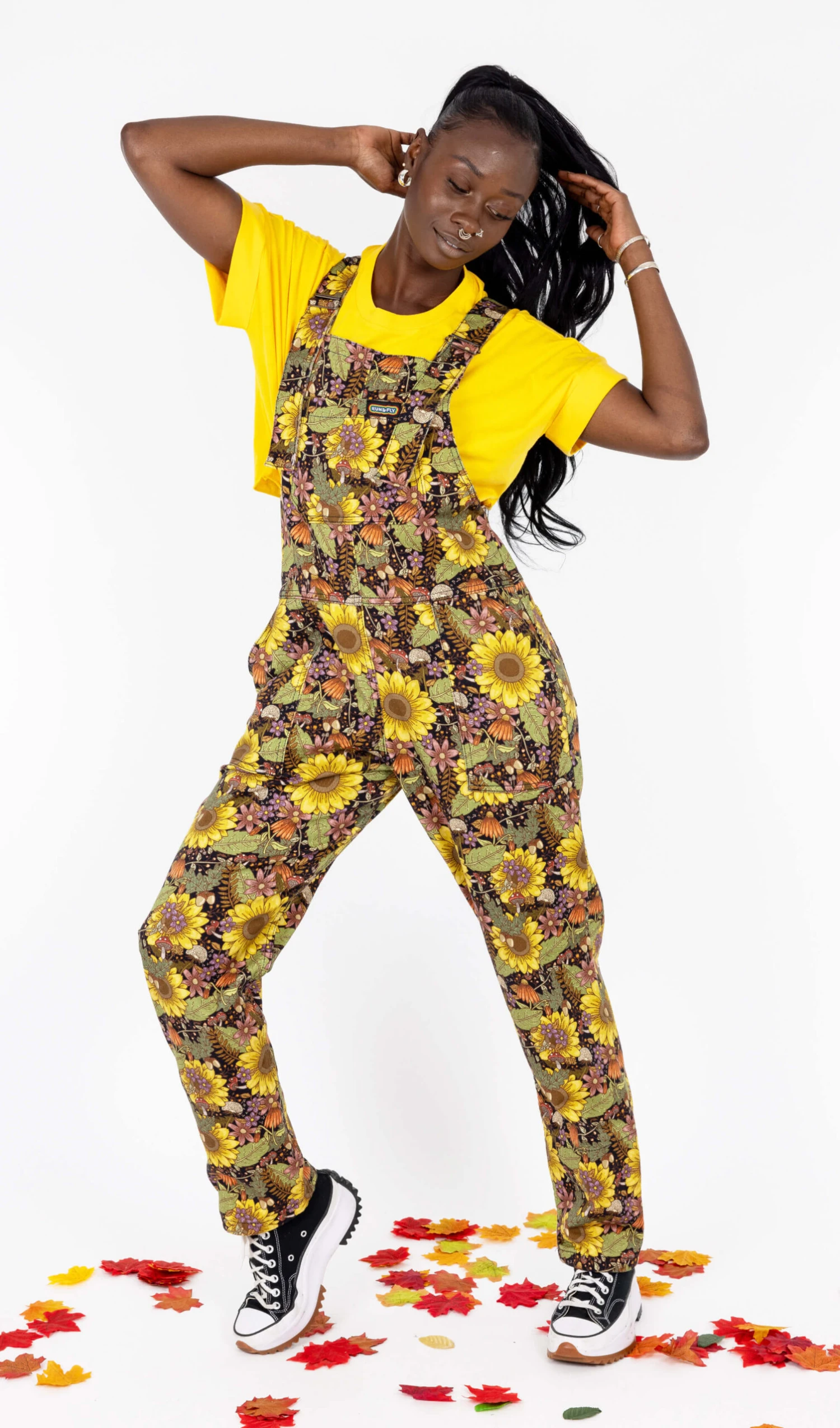 Midnight Blues Stretch Twill Dungarees, a sunflower-autumnal print that packs a pun-ch! Make sure your wardrobe is blooming with style! These dungarees are designed for comfort and built for longevity, so you can wear them all season long.