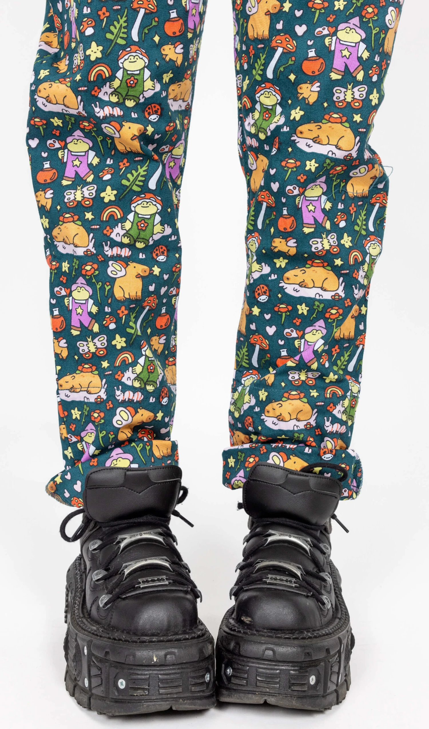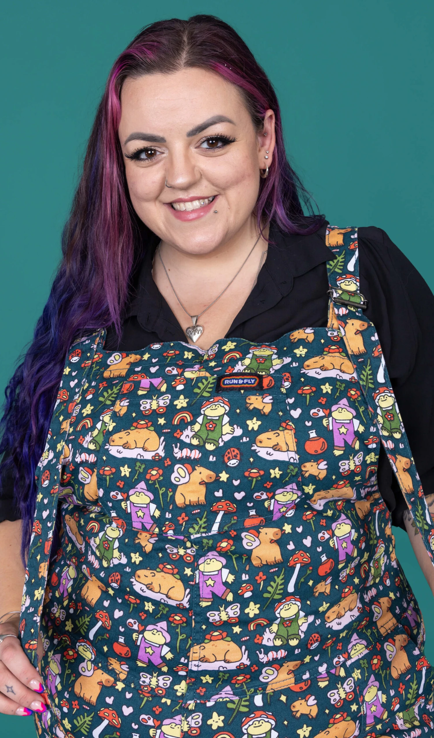 Go wild with style in Run & Fly x Nimbob Capybara Fairies Dungarees! Made from stretch twill, these dungarees are perfect for any adventure. With a playful design featuring capybara fairies, they’re sure to bring a smile to your face. Comfort and whimsy in one fun package!
