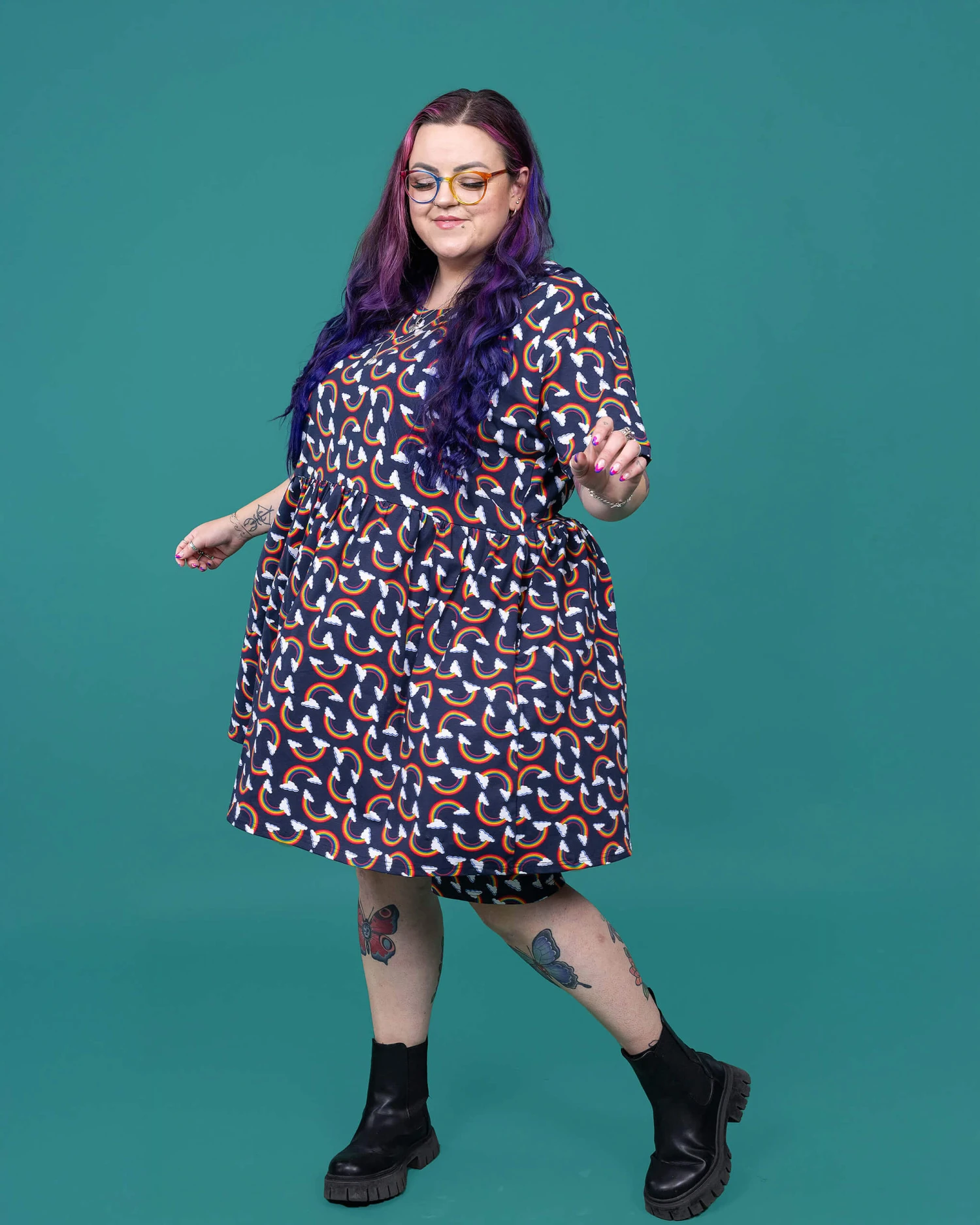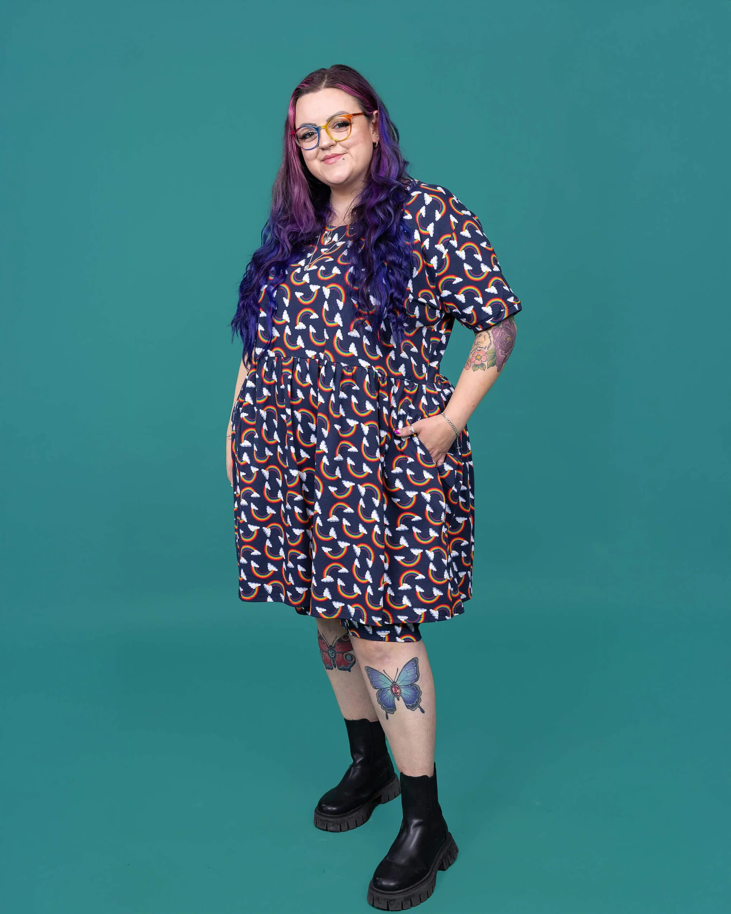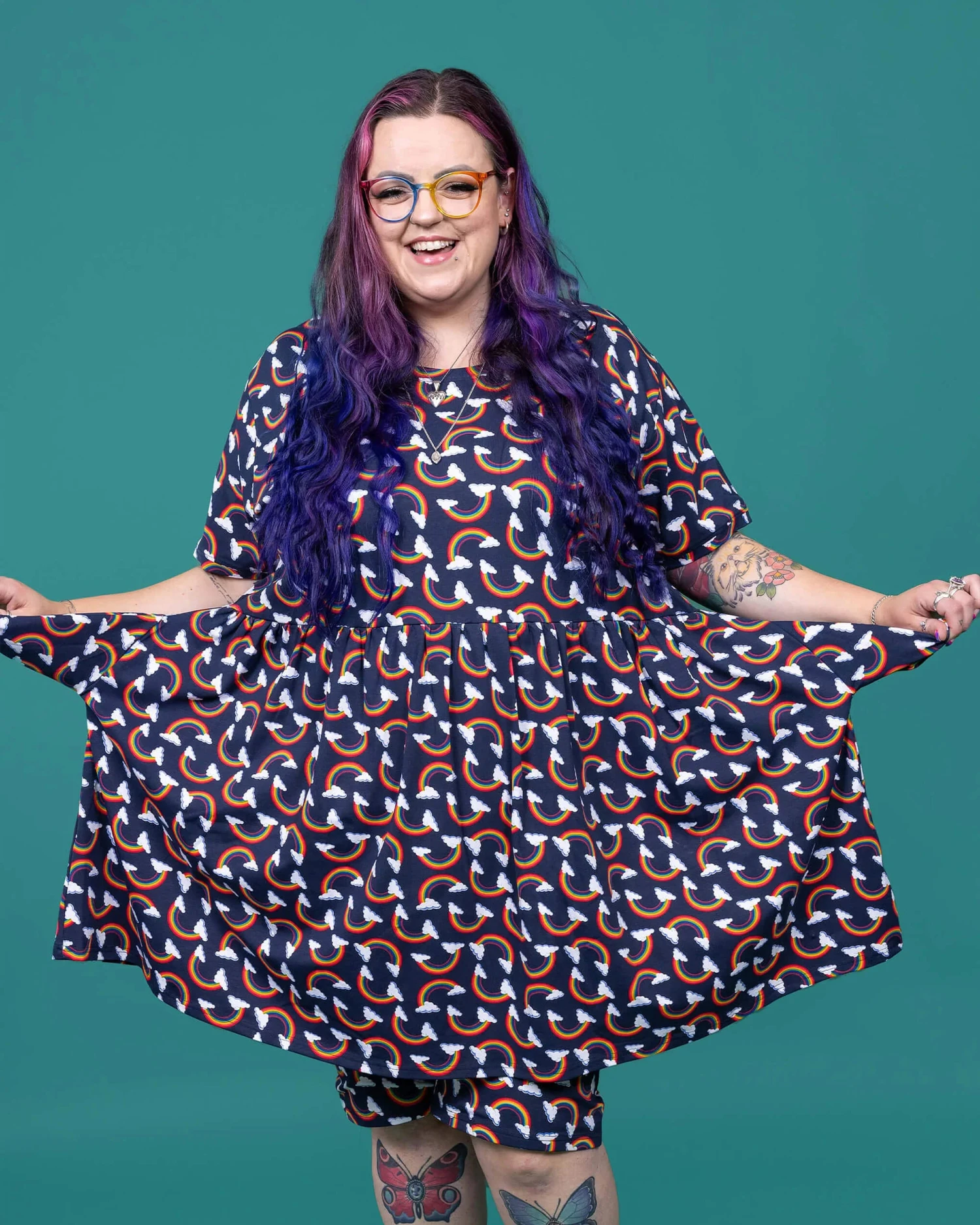 Be the rainbow in a cloudy day with Run & Fly’s Over the Rainbow & Clouds Oversized Smock Dress. This vibrant and relaxed dress will bring out your playful side with its oversized fit and whimsical design. This dress will surely brighten up your wardrobe!