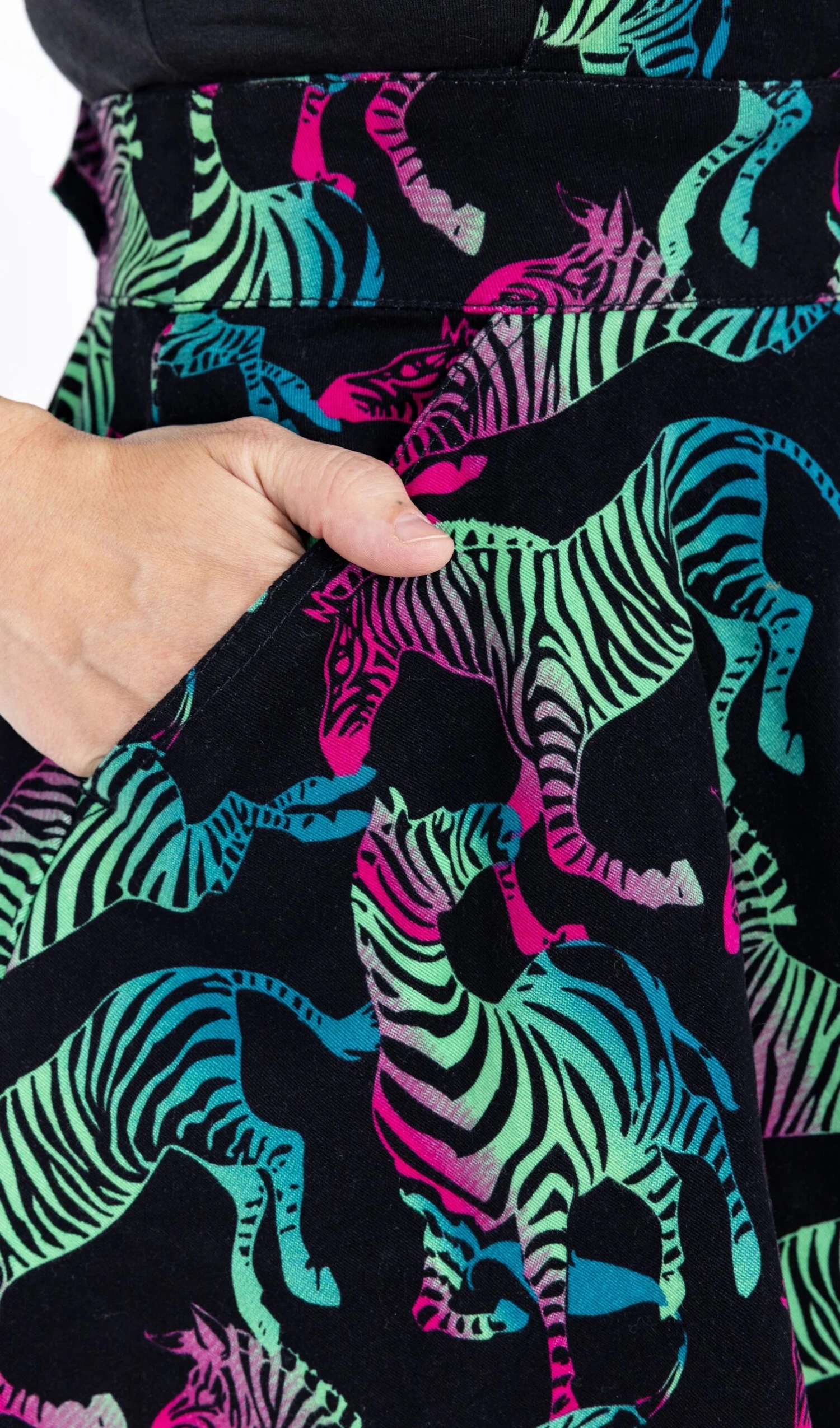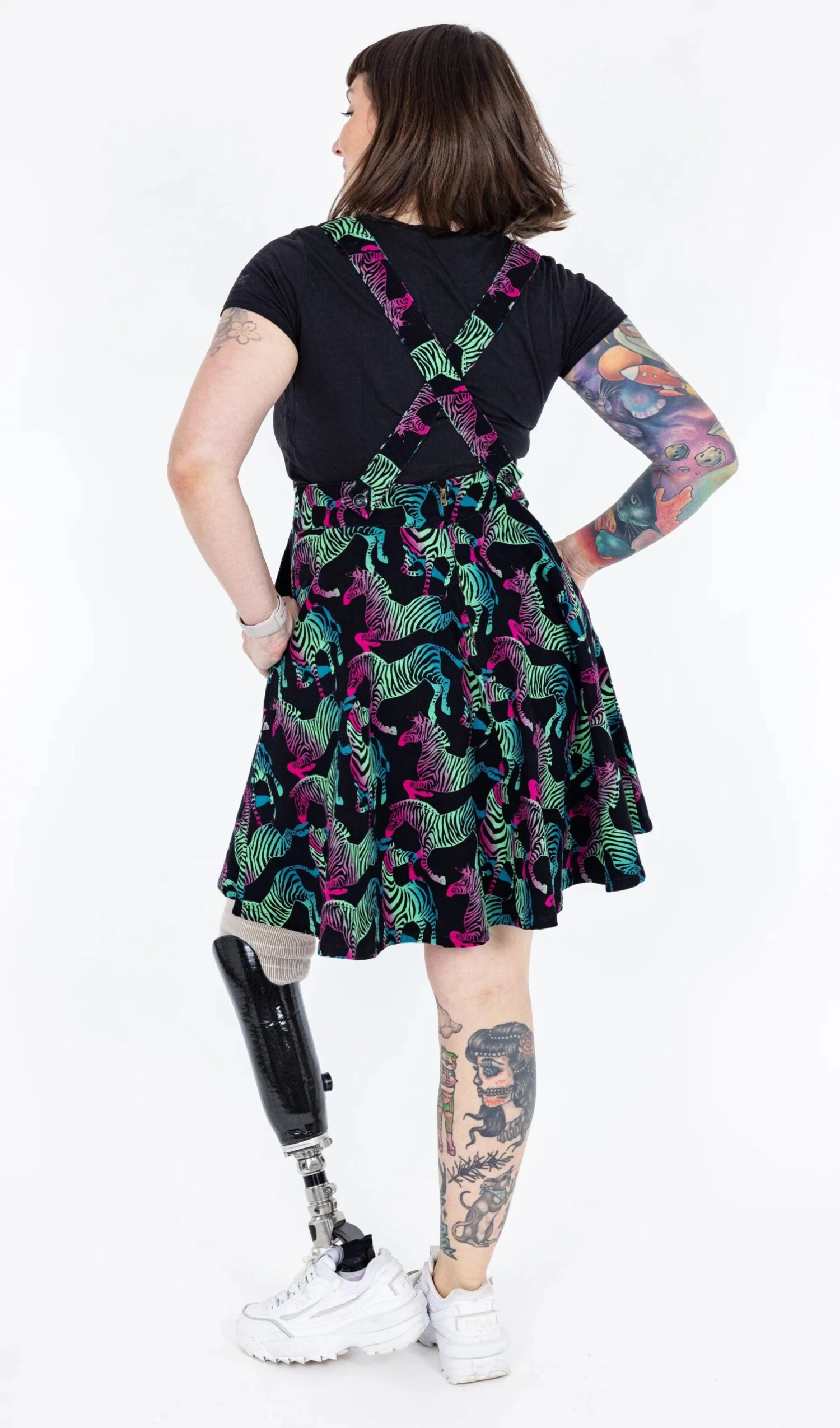 Add some pizazz to your wardrobe with this Rainbow Zebra Flared Pinafore Dress! Show off your dazzling style with this fun pinafore dress that features a rainbow zebra pattern. Stand out from the crowd and make a statement with this bold look!