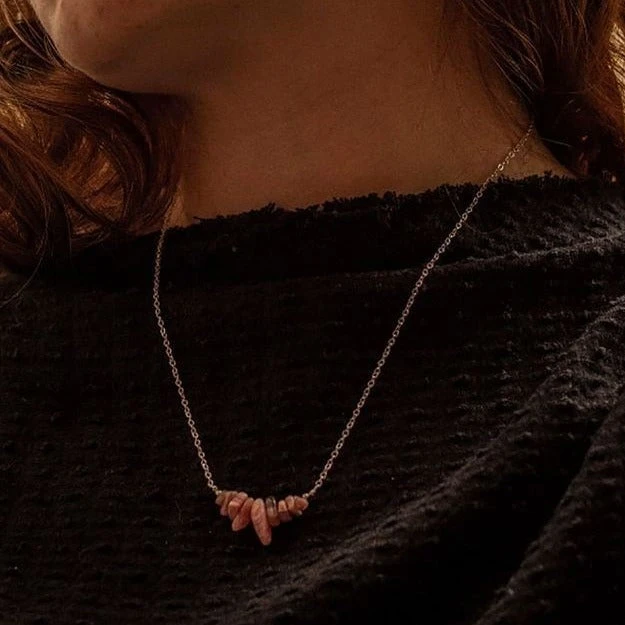On a 925-sterling silver chain, this necklace features a single Rose Quartz crystal pendant in a natural shape. Delicate in design, it’s the perfect go-to, easy to wear accessory this season. Each piece may vary slightly in size, although they are all generally sized the same.