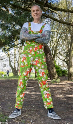James – @djjivinjimdandy He/Him is a men’s high street M, is 6’1 and wearing a size XXS