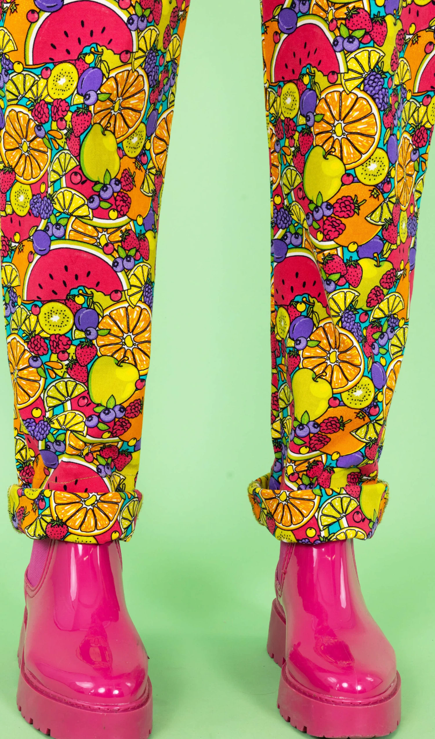 Add some fruity fun to your wardrobe with Run & Fly’s Tutti Frutti Stretch Twill Dungarees! Designed by Jen James, these bold and colorful dungarees feature a playful print that will have you feeling fresh and funky. Made with stretch twill fabric, they offer comfort and style all in one.