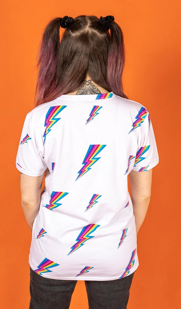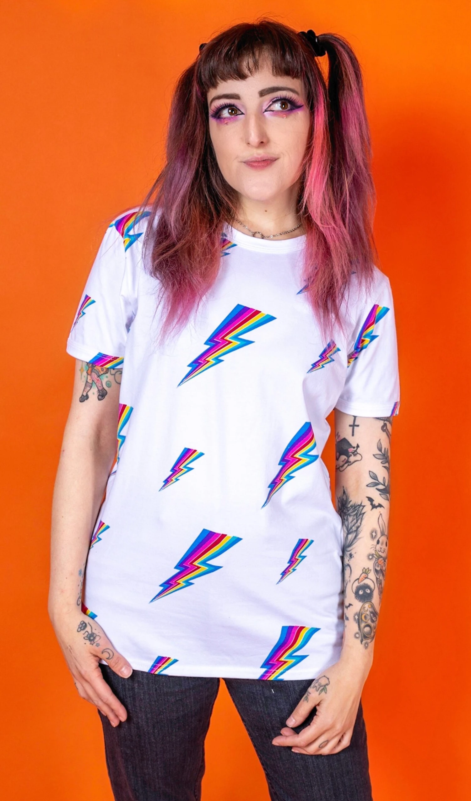 Fitted Cotton/Elastane Tee with all over White Lightning Bolt print.