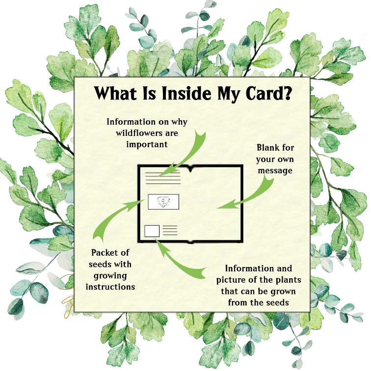 The perfect gift and greeting for nature lovers The card is handmade, A5 in size and has been left blank for your own message. The card contains a sealed packet of wildflower seeds along with growing instructions enclosed in a gift envelope.