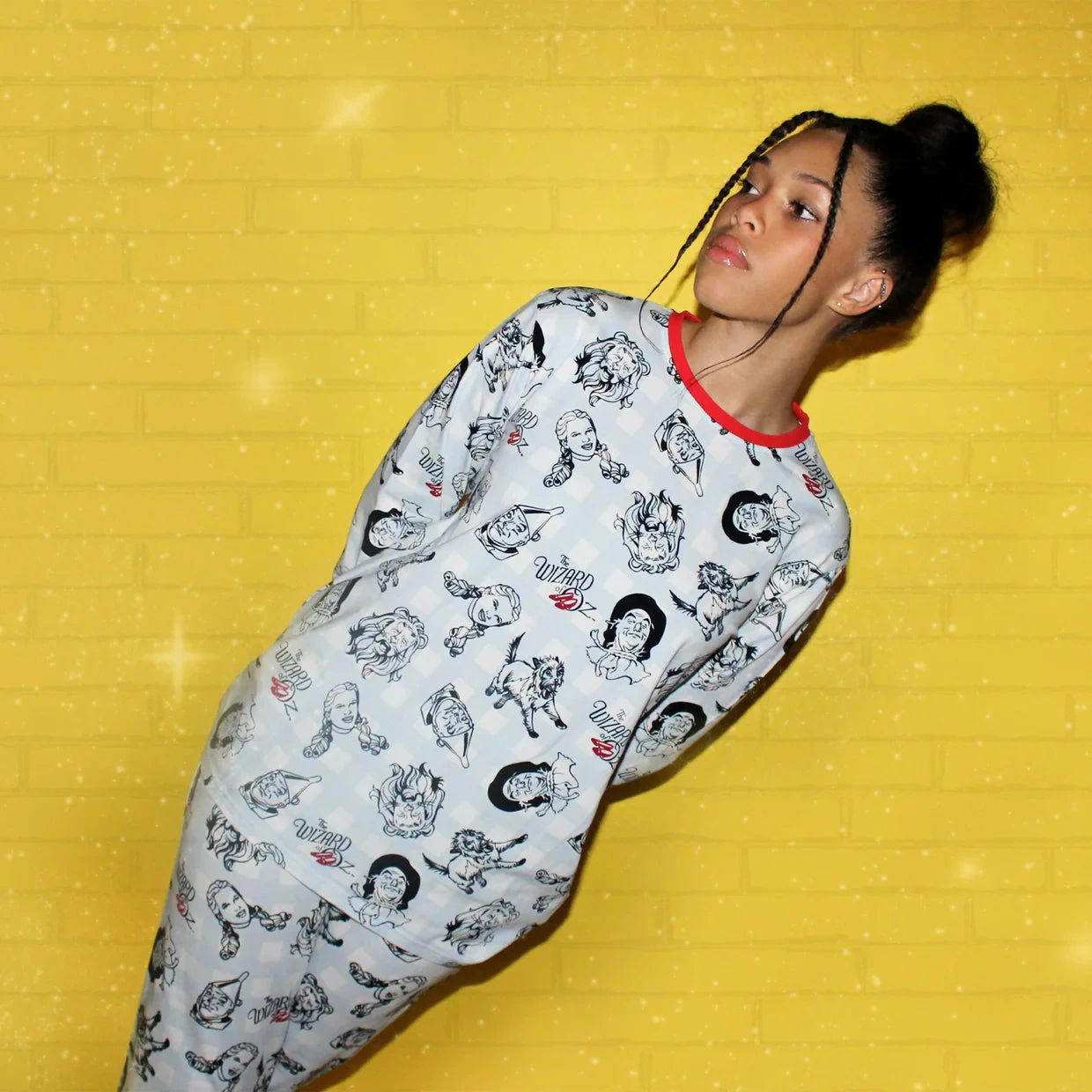 There’s no place like home to cozy up in Cakeoworthy’s unisex The Wizard of Oz™ PJ Set. Featuring an all-over print pattern of all your favourite characters from the iconic 1939 film The Wizard of Oz, including Dorothy Gale, Tin-Man, The Cowardly Lion, Toto, and Scarecrow.Â
